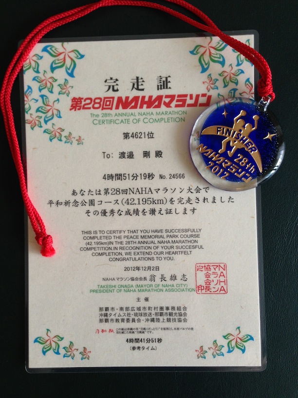 去年の12月、那覇マラソンに出場し、初めてのフルマラソン42.195kmを無事完走しました!
